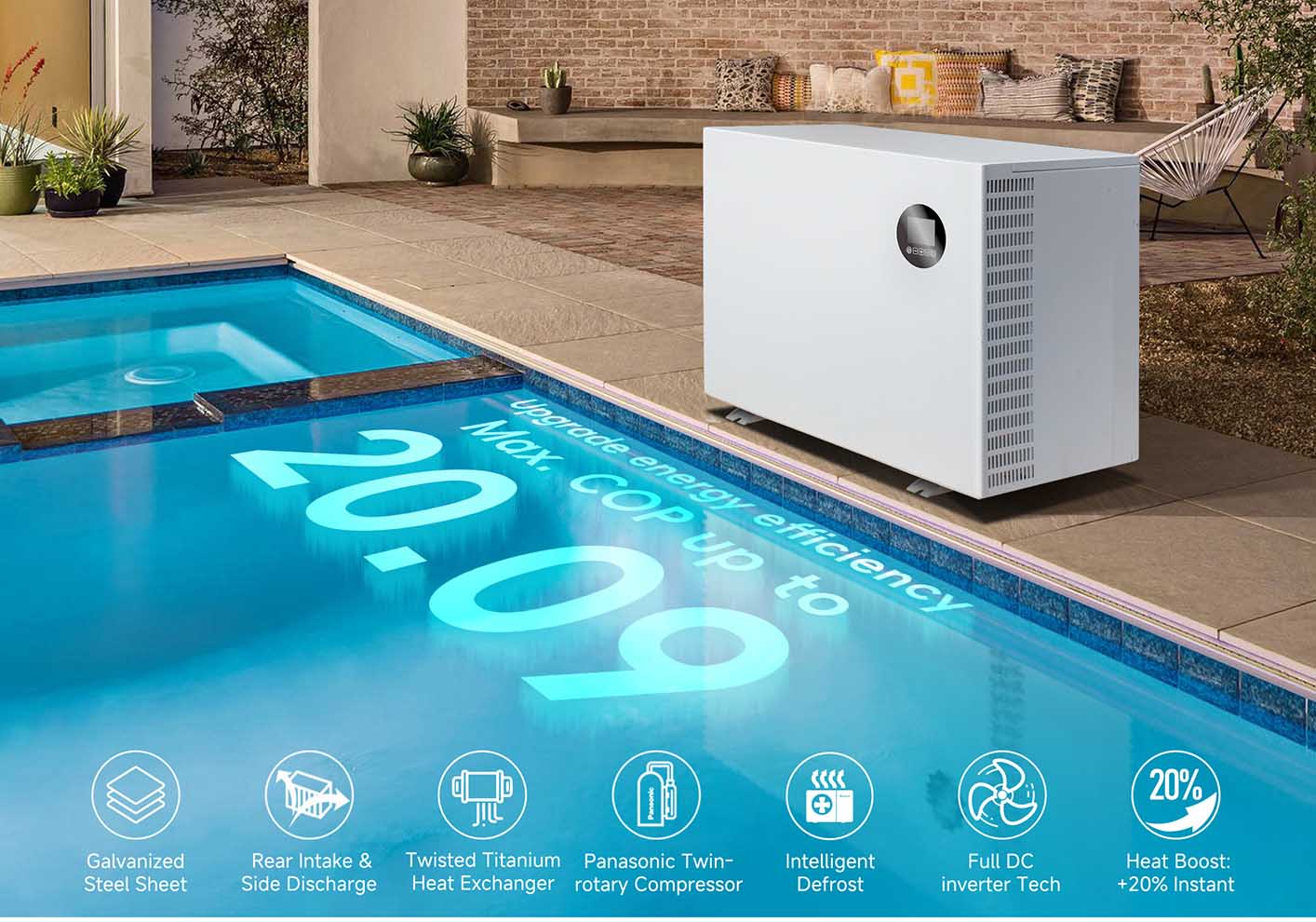 Dit zijn zeer energiezuinige poolverwarmers die werken als een airconditioner. Ze gebruiken een kleine hoeveelheid energie om warmte uit de omringende lucht te extraheren en over te brengen naar het zwembadwater. Het opwindende van de kachel van warmtepompbad is dat ze ook je zwembad kunnen afkoelen als het weer te warm is.