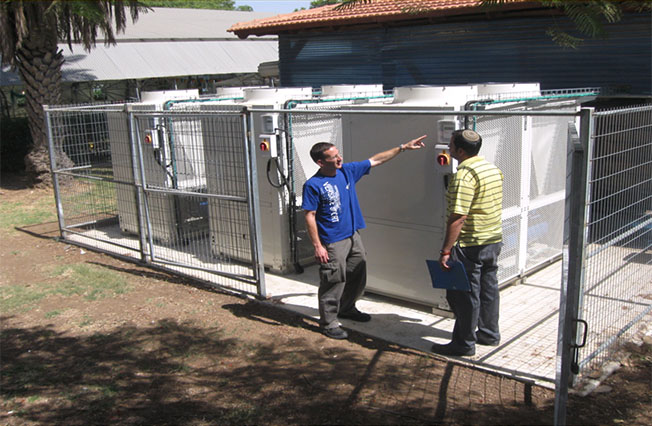 'Voor Mr. Anderson hebben we drie CGY/D-42 (HC) -eenheden geïnstalleerd-het hele lever van 46 kW verwarmingsvermogen met automatische ontdooiing en industriële corrosiebescherming. Het gesynchroniseerde besturingssysteem laat hem de watertemperatuur op afstand aanpassen en de energietrekking in alle machines, lawaai laag en biljetten beheersbaar. '